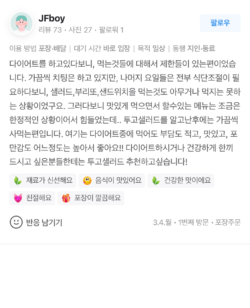 투고샐러드는 높습니다